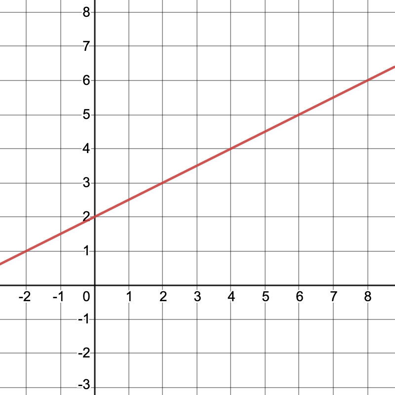 Find the area beteween \(f(x)=\frac{1}{2}x+2\) and the \(x\)-axis from \(x=2\) to \(x=6\text{.}\)